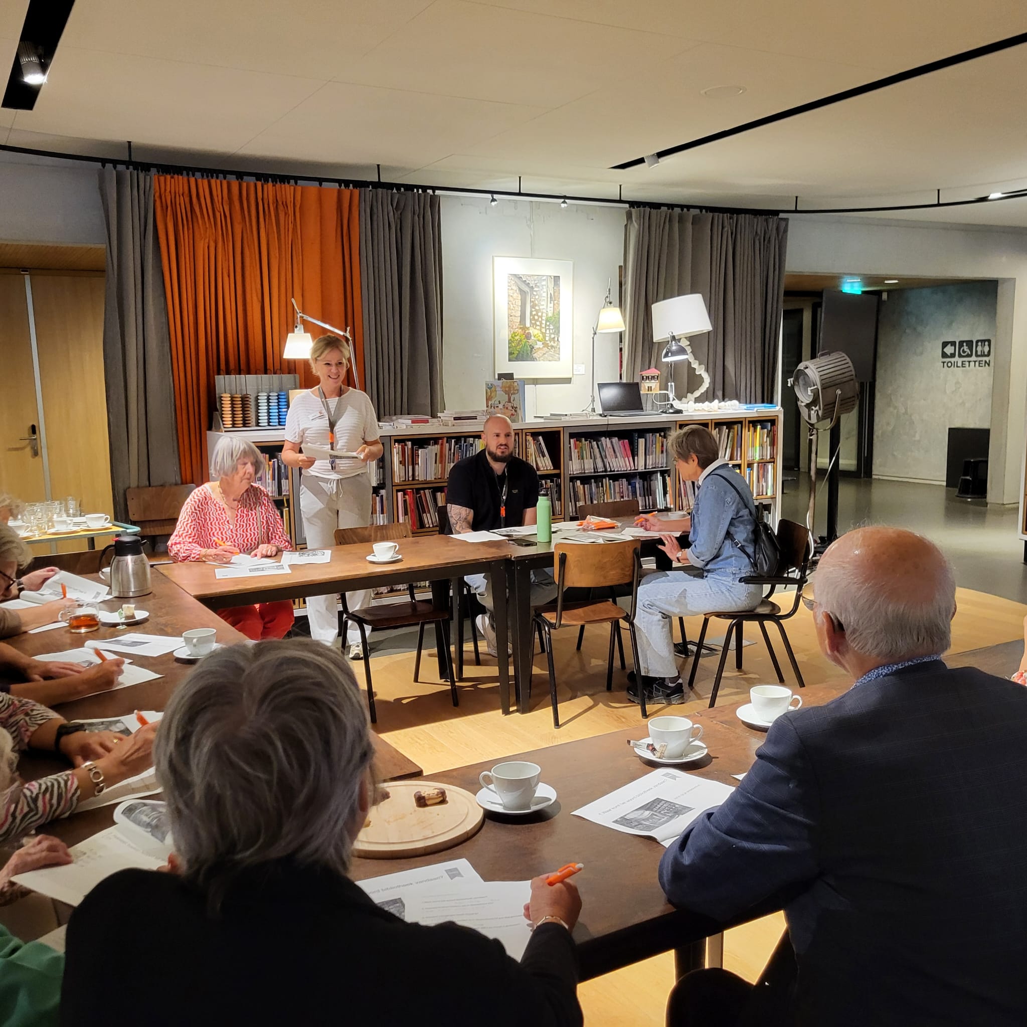 28 juli 2025 14:39Wij werden hartelijk ontvangen door Danny en Yvonne, die een leuk en informatief programma hadden samengesteld speciaal voor deze rondleiding. Theater De Bussel is verbouwd in 2015; de VVV is er gekomen en een prachtige bibliotheek met de uitstraling van een gezellige huiskamer. De rondleiding kon beginnen na al veel informatie over Theek 5 te hebben gekregen. Er staat o.a. een tafel met boeken die uitgekozen zijn door lezers. Men kan een tip geven wat je een goed boek vindt. Dit wordt eerst gecheckt door de medewerkers voordat het op de tafel komt. Iedereen die een boek interessant vindt mag dat kenbaar maken. Daarna kwamen wij bij het systeem van uitleen waar een technisch snufje in de tafel zit waar je je boeken op legt en de boeken registreert die men wil lenen. Mocht het zijn dat je een boek vergeten bent op tijd in te leveren, blokkeert het pasje en kun je op dat moment niets meenemen. De medewerkers zijn erg flexibel en begrijpend, een luisterend oor en het wordt opgelost. Wij zijn ook in een niet openbare ruimte geweest waar de ingeleverde boeken terecht komen op een lopende band en gesorteerd worden. Ook daar weer veel informatie en er werden veel vragen gesteld. Als je lid bent is er ook een online bibliotheek en men heeft dan ook toegang tot digitale tijdschriften. Wij kregen informatie over de digitale overheid, cursussen te veel om op te noemen. (voor deze informatie hoeft men overigens geen lid te zijn). Je kan binnenlopen als je vragen hebt over je telefoon, tablet etc. en de medewerkers helpen je graag en anders verwijzen ze je naar een speciaal spreekuur. Na gezellig koffie gedronken te hebben met versnapering werd de groep opgesplitst om het escapekofferspel te spelen, je kreeg hiervoor een kwartier, het was leuk en leerzaam. De bedoeling bleek achteraf om te voelen wat mensen met dyslexie ervaren. Daarna nog een quiz met vragen over Theek 5. De tijd vloog om want intussen was het al later geworden dan gepland. Met veel nieuwe informatie keerde iedereen weer huiswaarts na Danny en Yvonne bedankt te hebben voor dit leuke programma.